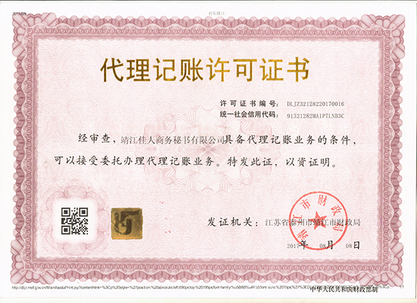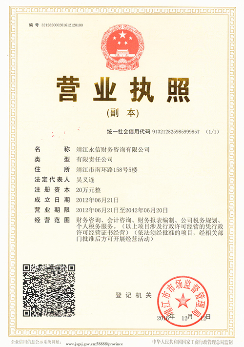 本站關鍵詞:靖江代辦營業執照、靖江代理記賬